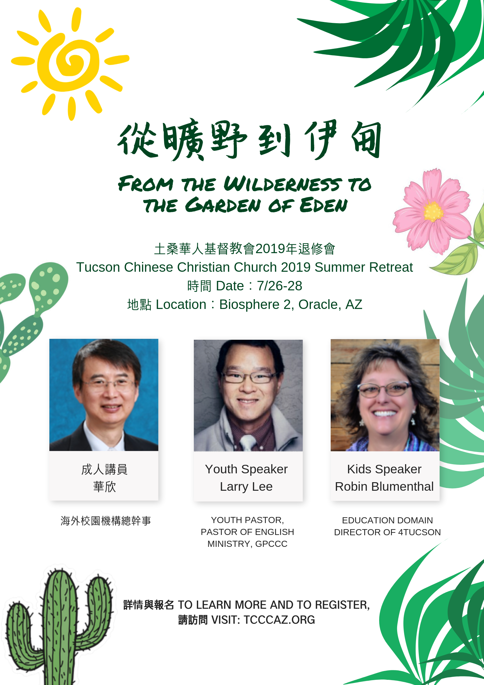 奉獻支票擡頭請寫TCCC,備註請寫2019年退修會。Make Offering check payable to TCCC and Memo: 2019 summer Retreat.